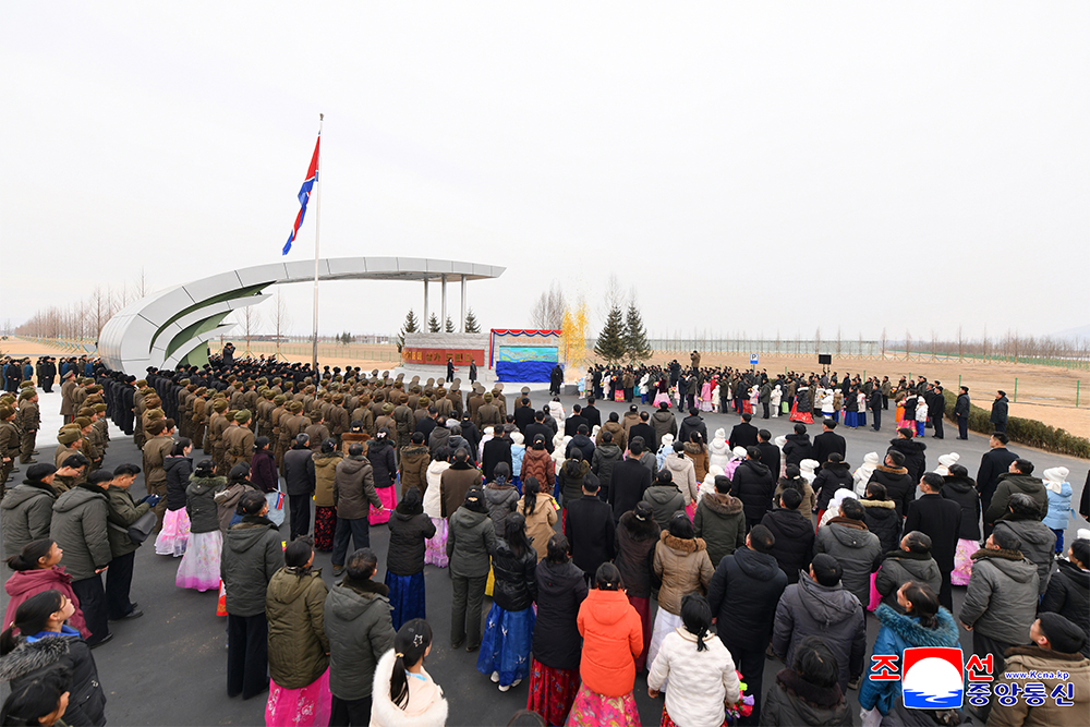 Kim Jong Un extended warm encouragement to the officers and men of the army and young builders, who successfully turned the island area into an ideal farm town in the new era with their ardent patriotic enthusiasm and labor efforts, cherishing the Party’s grand plan and decision for regional development as the absolute truth.