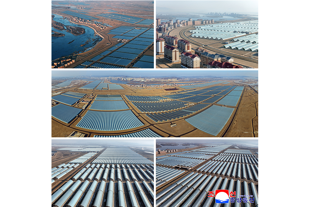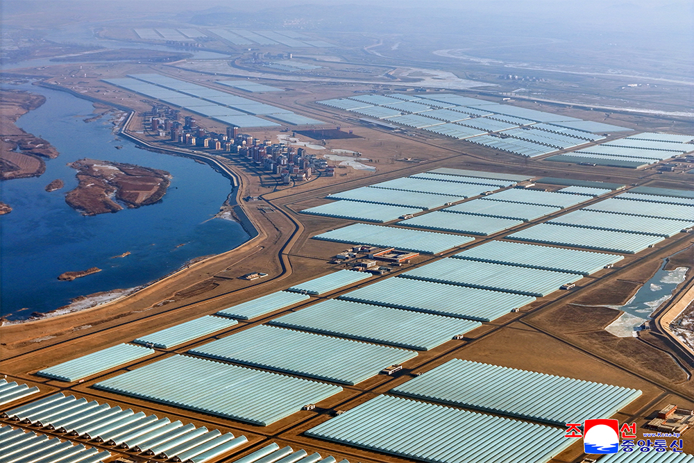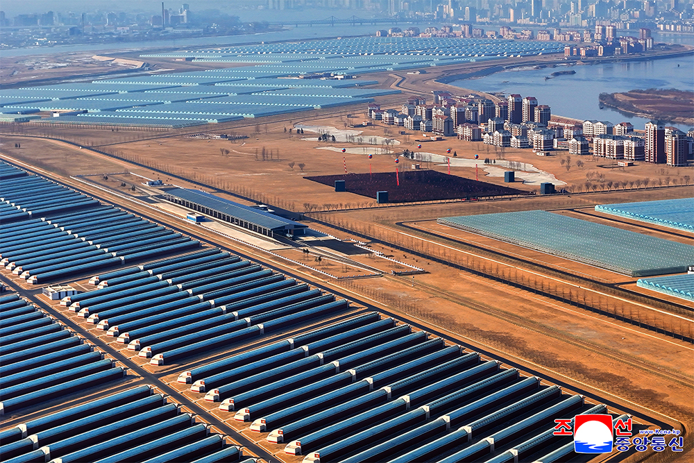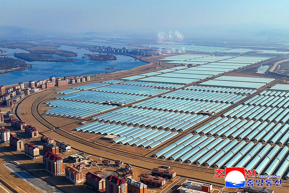 The Sinuiju Combined Greenhouse Farm, a beautiful combination of a thousand and hundreds of modern greenhouses of different types, vegetable science research center, modern houses, various bases for cultural life and peculiar landscape, is another proud monumental edifice witnessing the history of great changes in the era of Kim Jong Un and a proud gift of loyalty presented by the young builders to the Ninth Congress of the WPK.