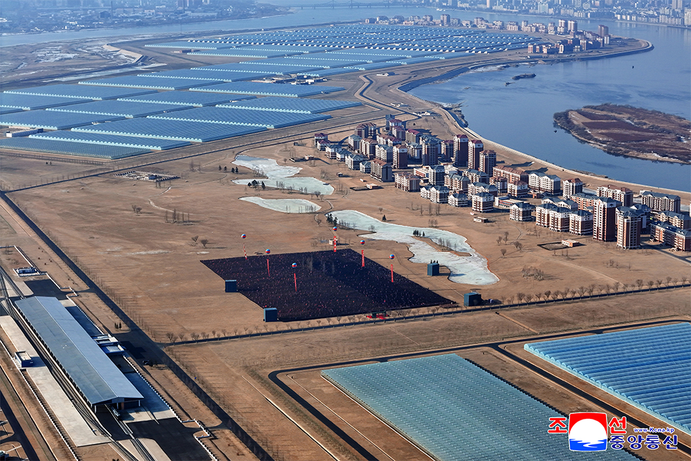 Kim Jong Un extended warm encouragement to the officers and men of the army and young builders, who successfully turned the island area into an ideal farm town in the new era with their ardent patriotic enthusiasm and labor efforts, cherishing the Party’s grand plan and decision for regional development as the absolute truth.