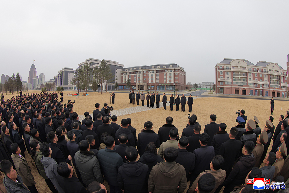 Present at the tree planting were major leading cadres of the Party and the government, families of the martyrs of the overseas military operations who moved into their new houses in Saeppyol Street, officials of the Party and power organs in Hwasong District and students of revolutionary schools.
