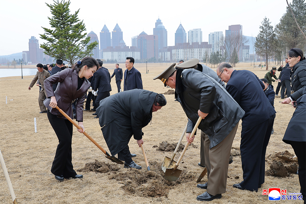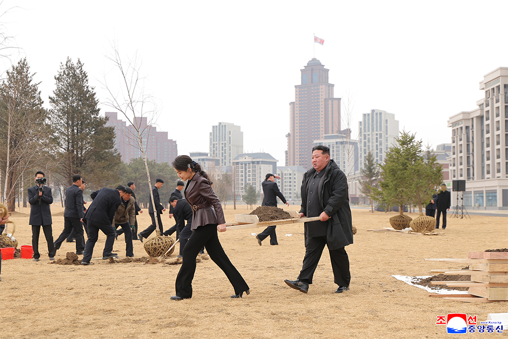 Kim Jong Un, general secretary of the Workers’ Party of Korea and president of the State Affairs of the Democratic People’s Republic of Korea, planted trees at the pondside park in Saeppyol Street on March 14, the tree-planting day.